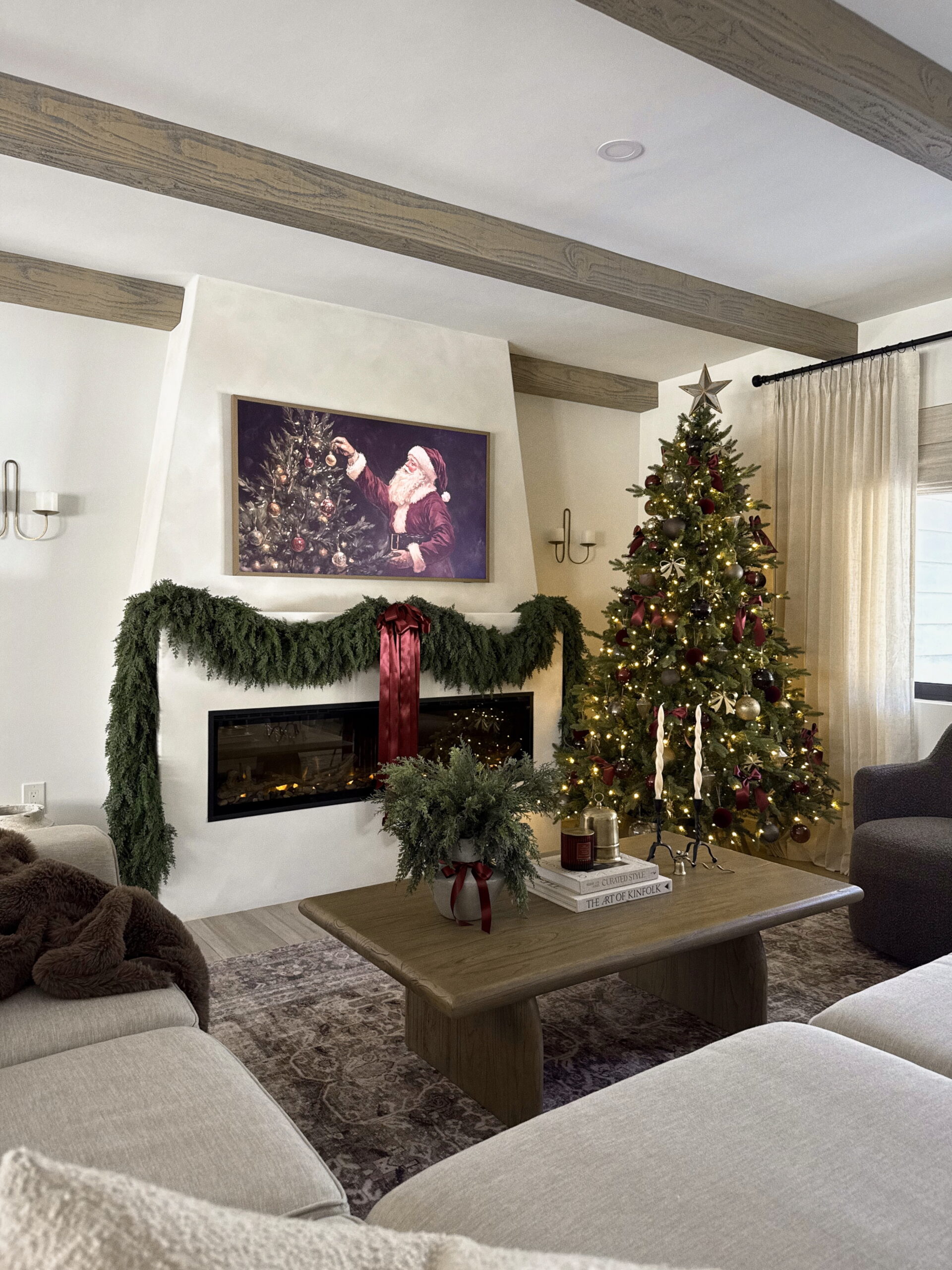 2025 Christmas tree details! This year I went with a luxe Ralph Lauren inspired aesthetic satin ribbon, rich burgundy tones, metallic touches, and the prettiest bows. Can’t wait to show you a still photo of this space, but for now… here are all the tree details.